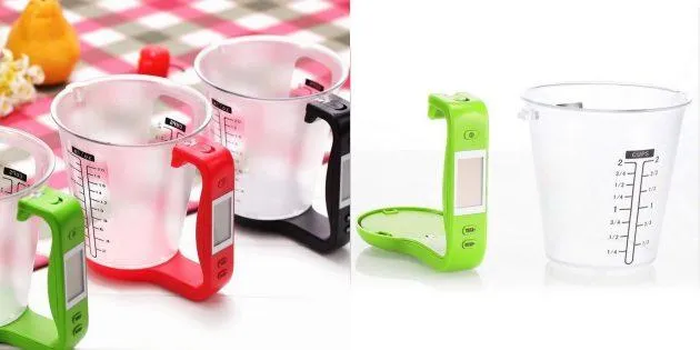 Універсальна ємність, яка допоможе максимально точно визначати об'єм та масу ваших продуктів. Складається з двох частин: мірної склянки та ваги, яка має вигляд ручки та підставки. Ціна такого прибору становить 360 грн.