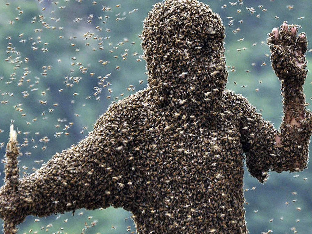 Суть рекорду в тому, що на тіло людини повинно було сісти максимально багато бджіл. Рекордсменом став Ші Пінг, на тілі якого нарахували 300 000 бджіл.