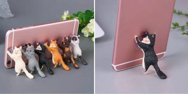 Тримач у вигляді одного або декількох котів – нестандартний варіант зручного розташування та фіксації планшета, електронної книги чи телефона.