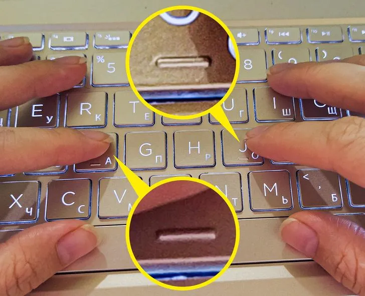 На клавіатурі ноутбука чи комп'ютері на літерах F та J є випуклі смужки. Ці смужки пришвидшують процес так званого "сліпого набору".