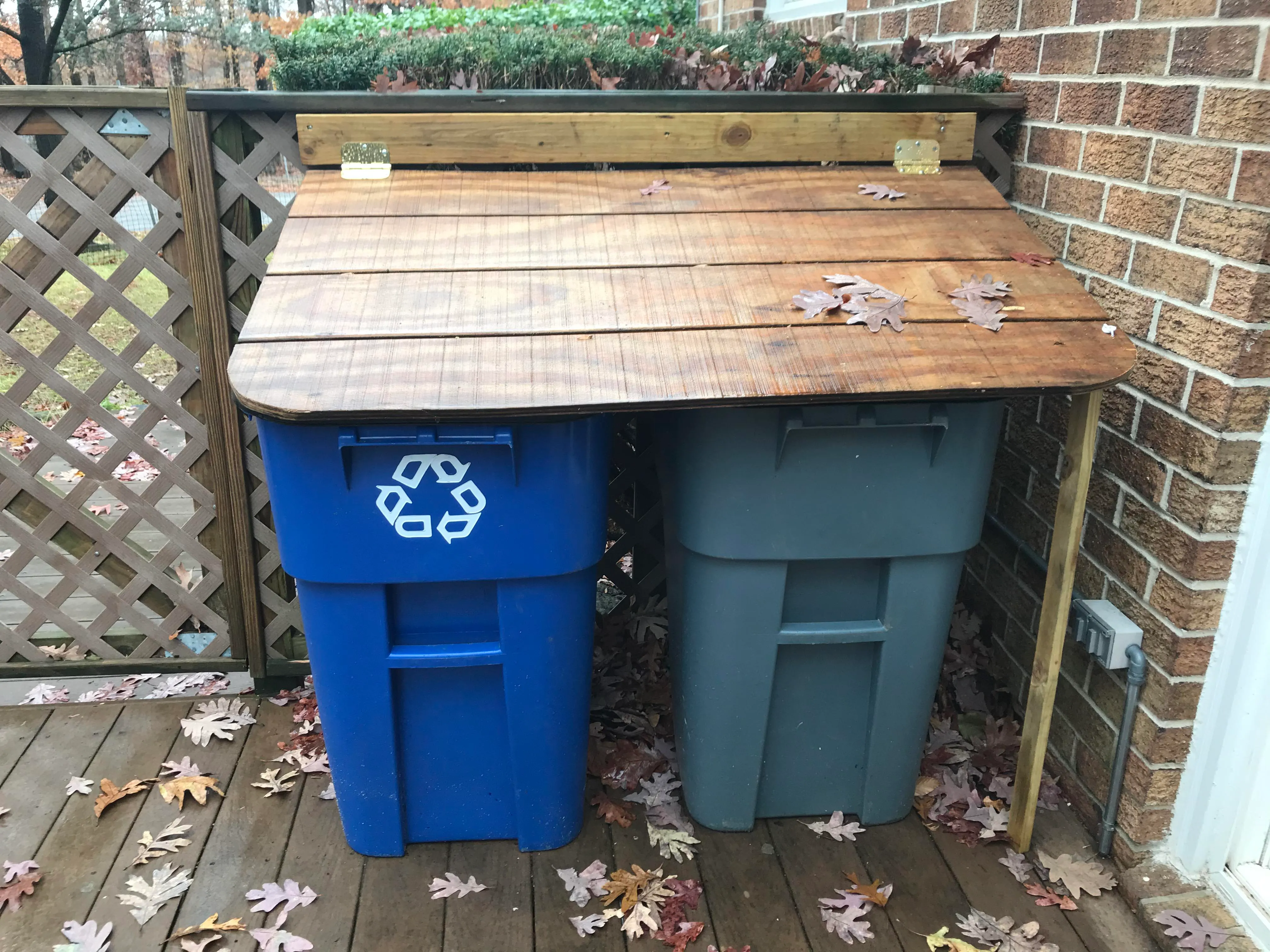 Якщо на подвір'ї катастрофічно не вистачає місця для різних дрібничок, виготовить звичайну "кришку" для стола. Нею ви зможете накрити сміттєві ящики, а потім поставити речі для саду.