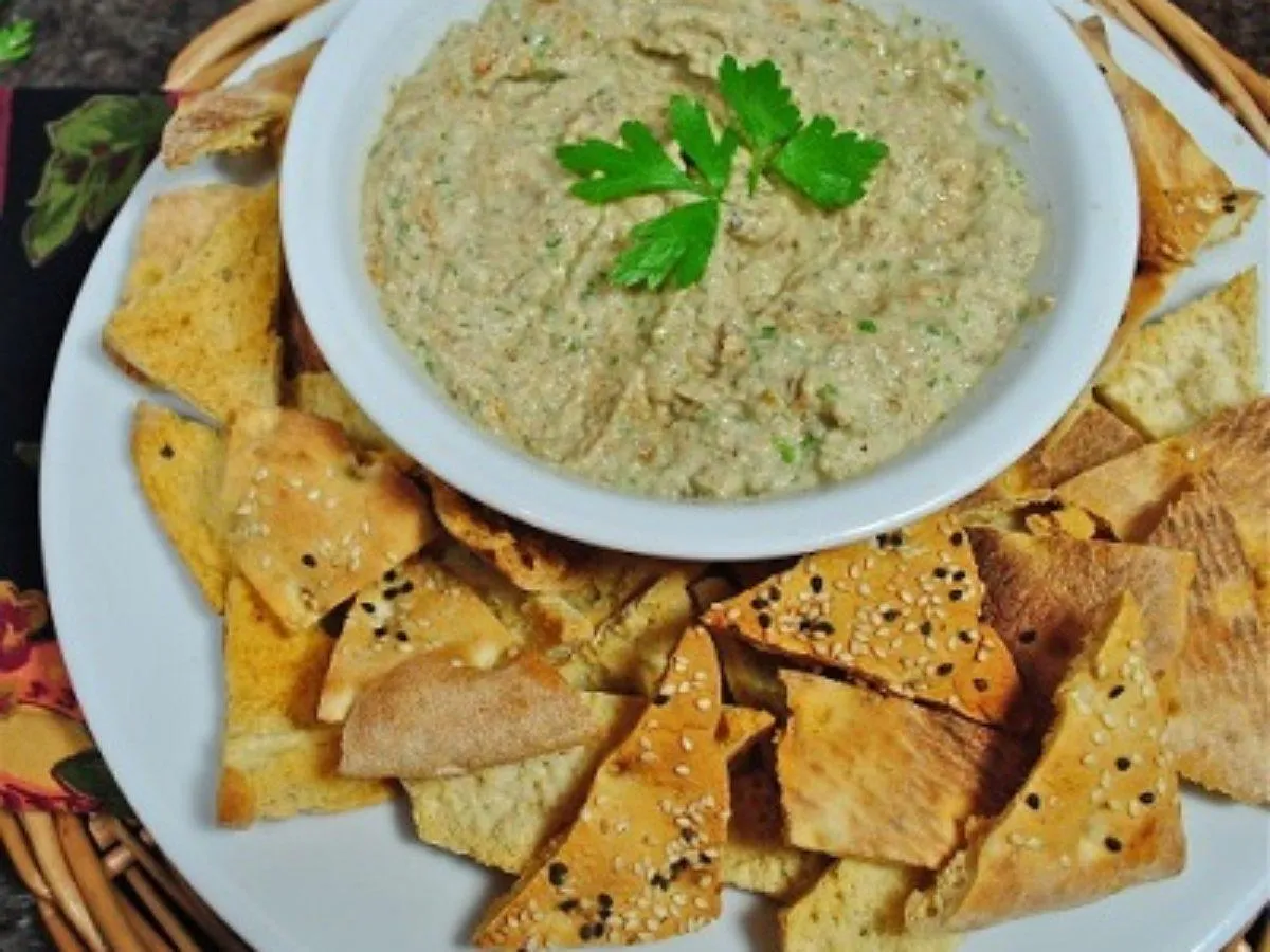 Крок 2. Покладіть м'якуш овочів у блендер, додайте часник, олію, кунжутну пасту та петрушку. Приправте сіллю, перцем, та подрібніть. Подавайте на стіл з підсмажений чорним хлібом.