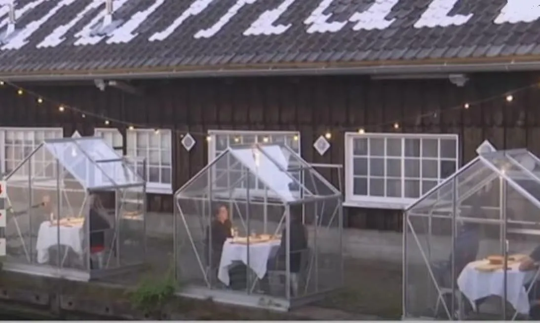 Власники ресторанів у Амстердамі придумали спосіб, як захистити своїх відвідувачів. Літні тераси одного з закладів, де вирощувалися овочі й квіти для того ж таки ресторану, перетворили на прозорі "кабінки" зі столиками на двох. Так гості можуть насолоджуватись стравами та видом з тераси безпечно і затишно.