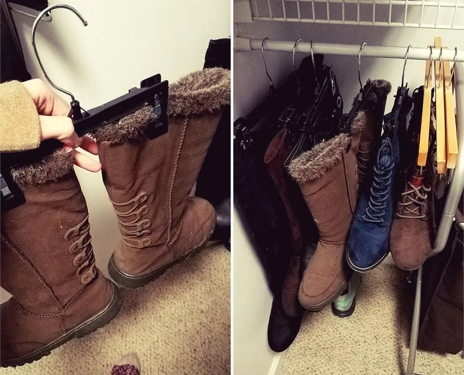 Якщо у вас є багато зимового чи осіннього взуття і ви не знаєте де та як його зберігати, використайте спеціальні вішалки для штанів. Після цього виділіть для вашого взуття спеціальну поличку або навіть шафку, акуратно все розвішайте і зберігайте в такому вигляді до наступного сезону.