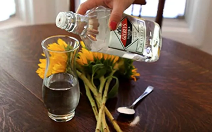 Горілка продовжить життя квітам у вазі. Кілька крапель горілки, чайна ложка цукру, вода – і квіти будуть радувати довго. Але пам'ятайте, даний розчин слід міняти щодня.