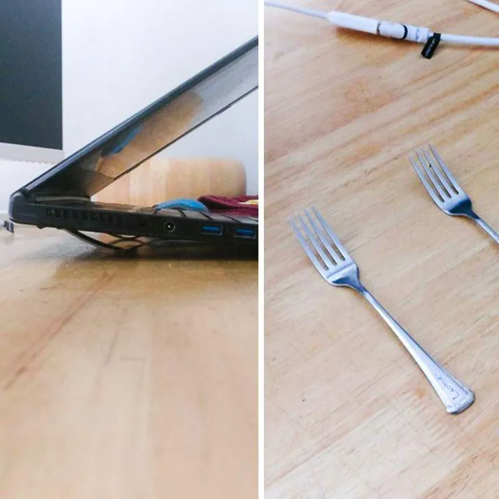 Підставте виделки, якщо ваш ноутбук перегрівається і шумить / Фото Bright Side