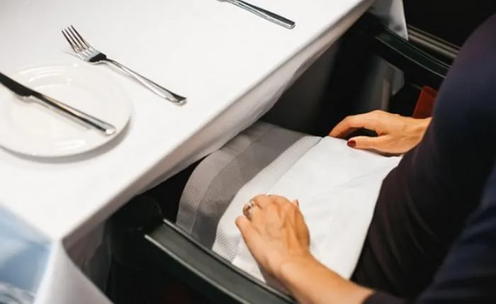 Серветку розправте на колінах, не потрібно її закладати за комір. До речі, наприкінці трапези залиште її зліва від тарілки.