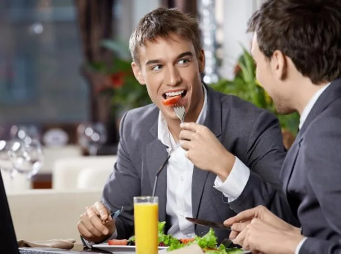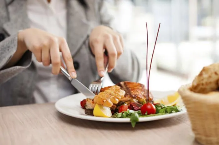 Не потрібно нахилятися до тарілки. І тим більше підносити тарілку до лиця. Випрямитеся, адже 20 – 30 сантиметрів – не така вже й велика відстань.