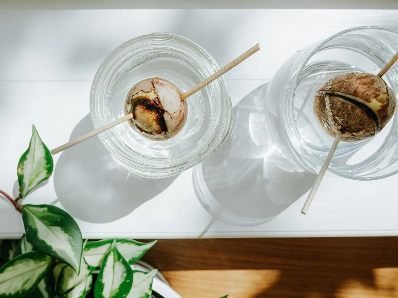 Авокадо досить невибагливий у вирощуванні, тому кісточку можна просто покласти у землю, але так насінинка буде довго проростати, до 3 місяців. Куди швидший спосіб – поставити її у воду. У чистій насінині потрібно зробити посередині невеликі отвори по 5 міліметрів. Вставте у них 2 – 3 зубочистки та залиште кісточку на склянці з водою, яка повинна покривати її на половину.