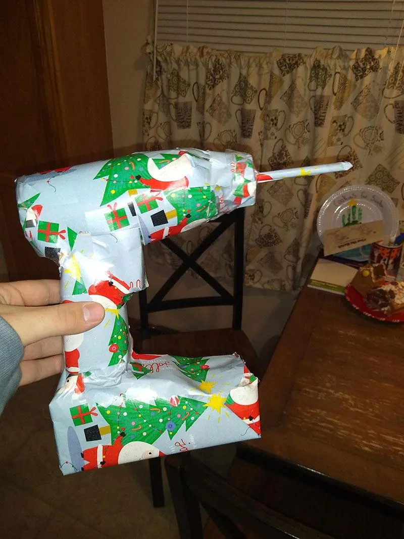 Тато упакував подарунок. Ви думаєте там стілець? Ага, зараз… Там пальто!