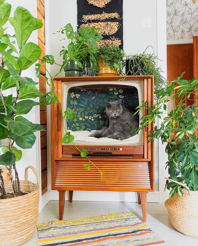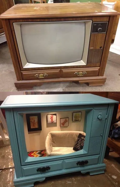 Зі старого телевізора вийде чудовий будиночок для домашніх улюбленців. Застеліть основу м’яким покривалом чи килимом і покладіть туди улюблені іграшки вашої тваринки.