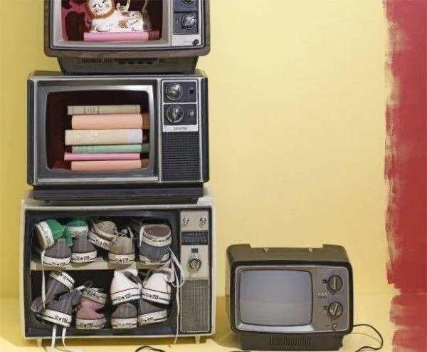 Якщо старих телевізорів у вас кілька, ви можете створити з них креативний комод. Поставте телевізори один на один і у вас вдома з'явиться додаткове місце для речей.