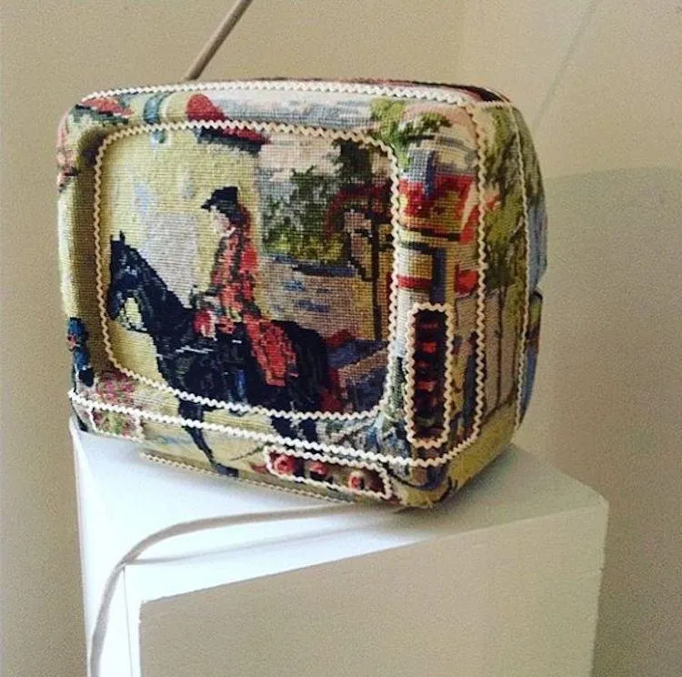 Телевізор прикрашений вишивкою / Фото Pinterest