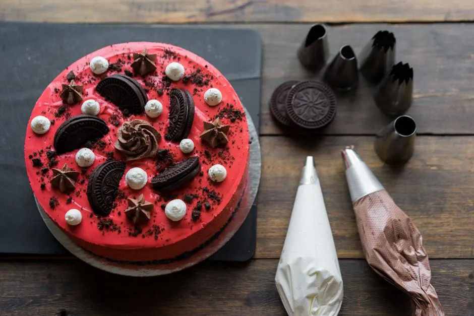 Бортики десерту можна обкласти вафельними трубочками, довгими батончиками чи печивом. А верх торта у цьому випадку варто заповнити драже або іншими смаколиками.
