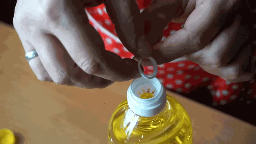 Під час відкривання чергової пляшки олії ви ніколи не задумувались, навіщо там потрібне кільце. Більшість зазвичай викидає цю деталь у смітник. Хоча насправді це чи не найважливіша частина кришки. Саме кільце може стати чудовим дозатором та зекономити олію під час використання. Потрібно лише правильно його вставити назад у горлечко.