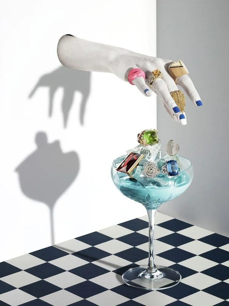 Смачний коктейль рекламує прикраси, які ви зможете одягнути на вечірку чи святкування. Яскраво, вишукано і креативно.