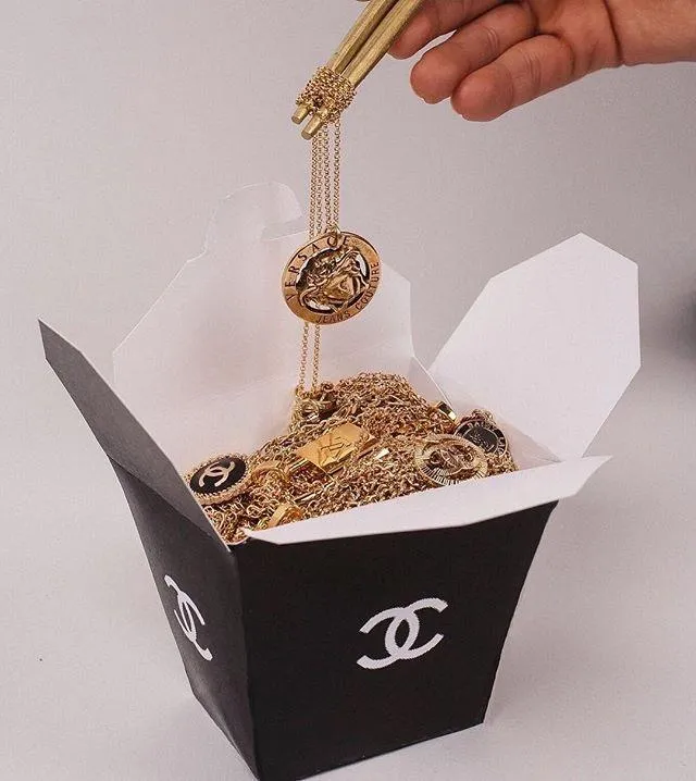 Від такої локшини не відмовився б ніхто. Стильний чорний колір додає вишуканості цій рекламі, а неймовірні підвіски від відомих світових брендів викликають неабиякий апетит.