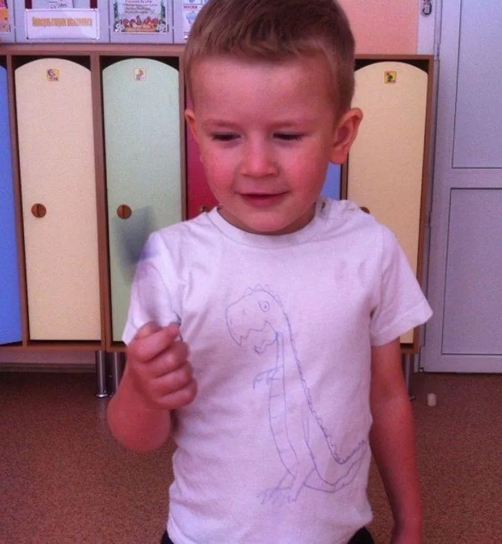 3. Малюк не хотів іти до садка в білій футболці, але намальований мамою динозаврик став переконливим аргументом