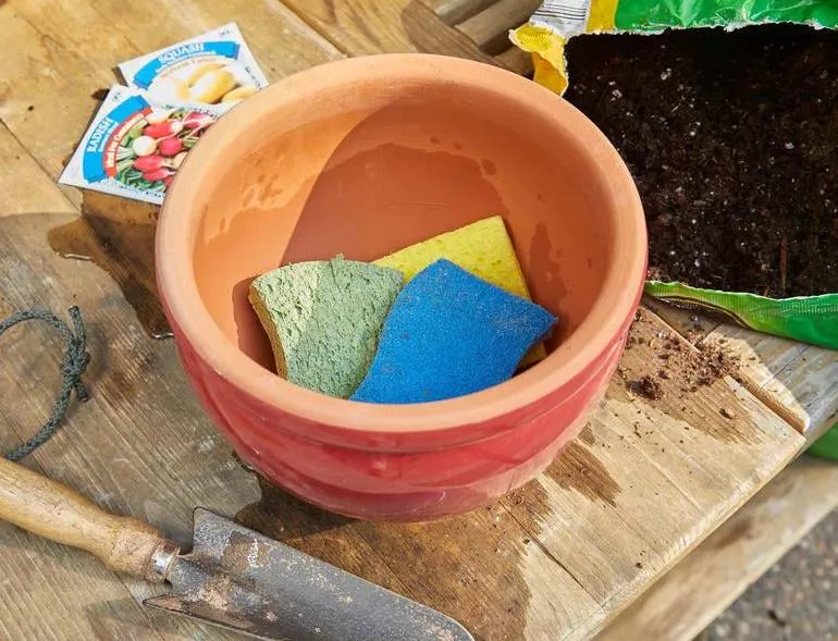 Покладіть у горщик для квітів старі мочалки / Фото Pinterest