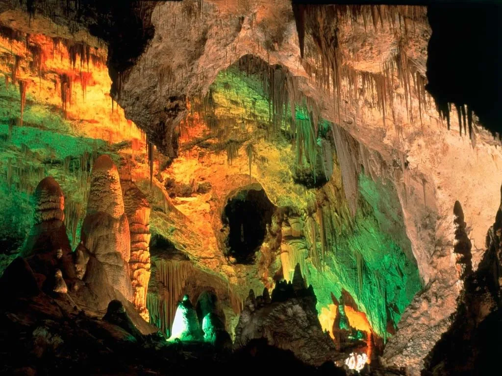 Карлсбадські печери розташовані в національному парку в Нью-Мексико. Мережа красивих печер була створена природою в результаті роз'їдання вапняку сірчаною кислотою. Масивні поклади глини та гіпсу роблять печери красивими та заворожуючими.