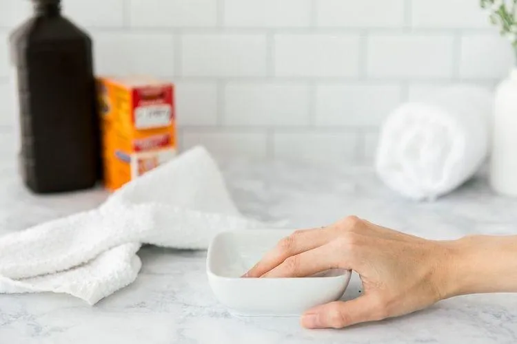 Якщо у вас раптом з'явився наліт чи грибок на керамічній плитці, нанесіть розведену харчову соду з перекисом. Розподіліть суміш на плитці та залиште на 5 хвилин, після чого змийте все губкою з водою.