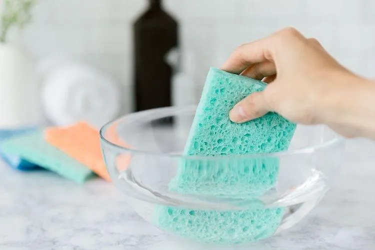 Кухонні губки містять на собі чимало бактерій, зокрема, кишкову паличку та сальмонелу. Варто регулярно дезінфікувати їх розчином, який на 50% складається з води і ще – з перекису водню.
