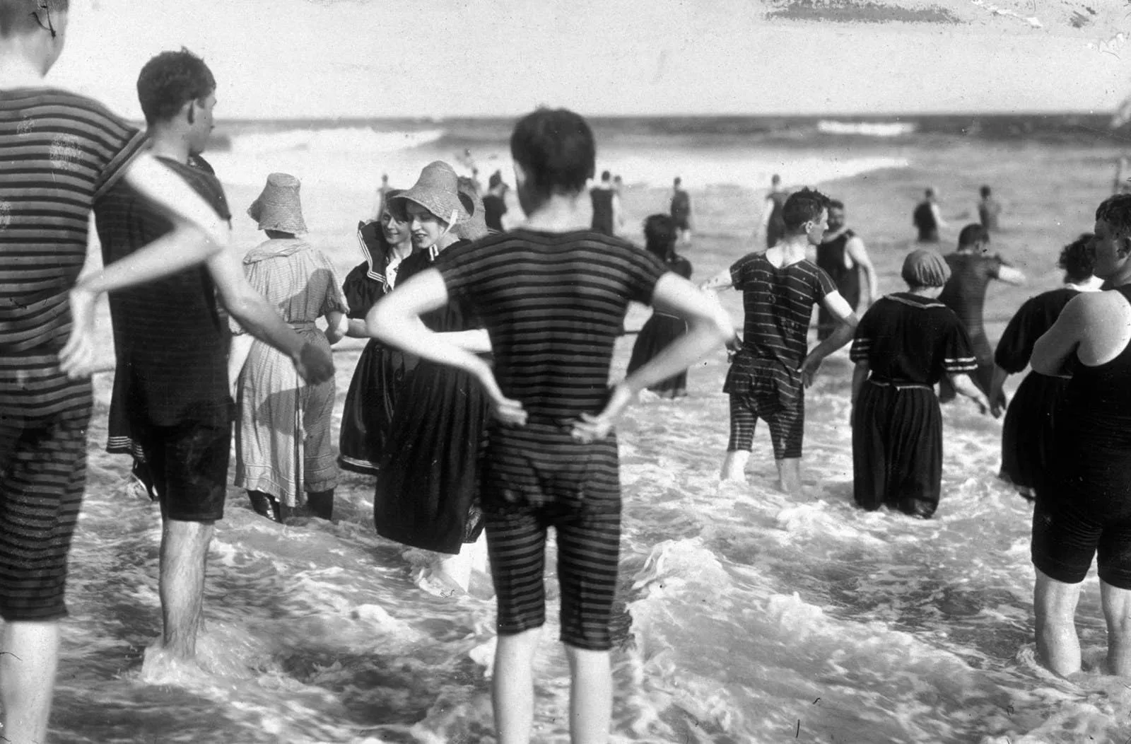 Група чоловіків і жінок стоїть в океані на пляжі Рокавей у Нью-Йорку, 1897 рік / Фото BuzzFeedNews