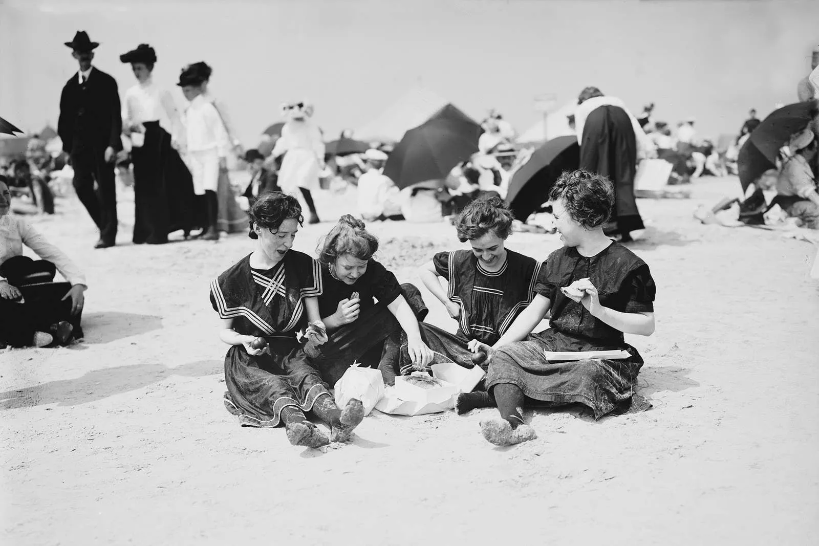 Група жінок влаштовує пікнік на пляжі в Нью-Йорку на Коні-Айленді, приблизно 1900 рік / Фото BuzzFeedNews