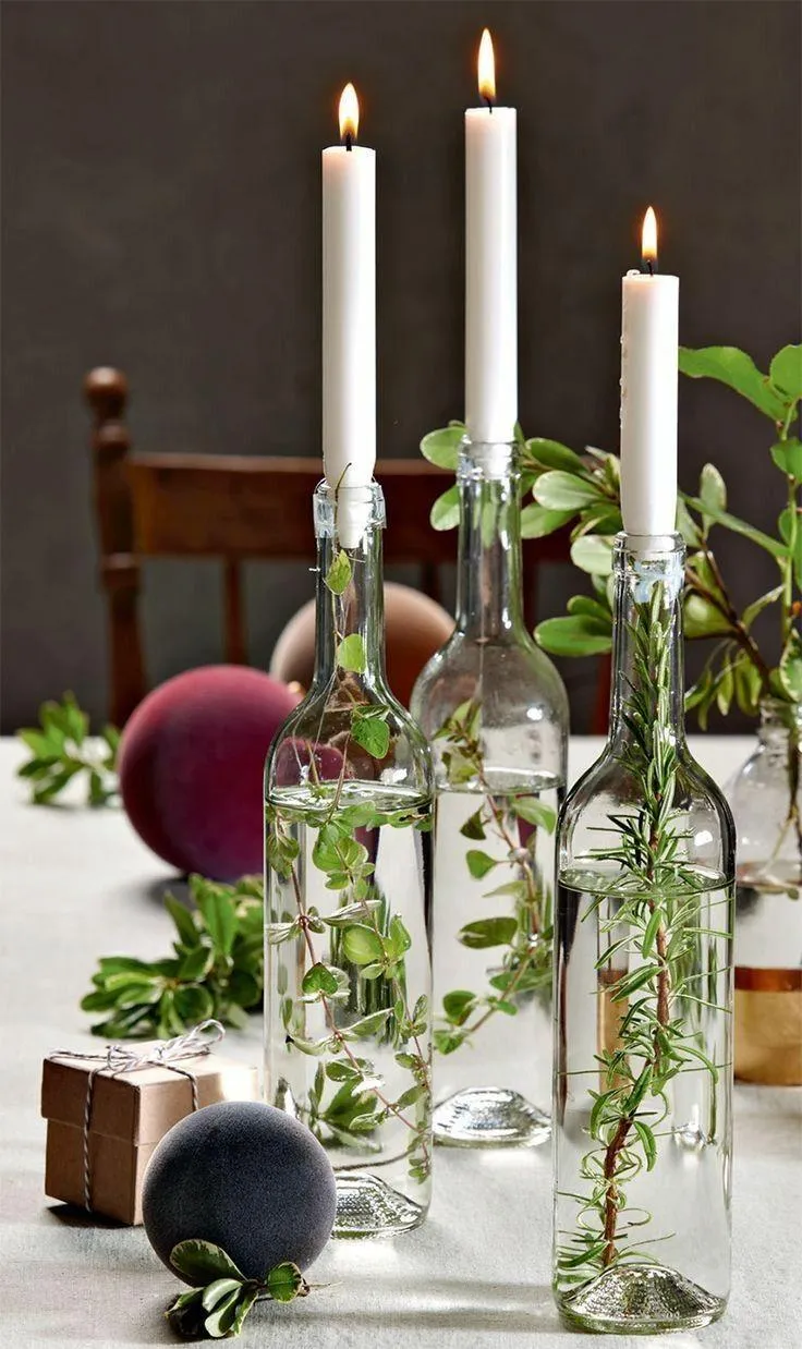 Вам знадобиться прозора пляшка, вода, гілочка розмарину та тонка свічка. Мінімум зусиль та витрат! А результат точно не залишить байдужим жодного гостя вашої домівки.