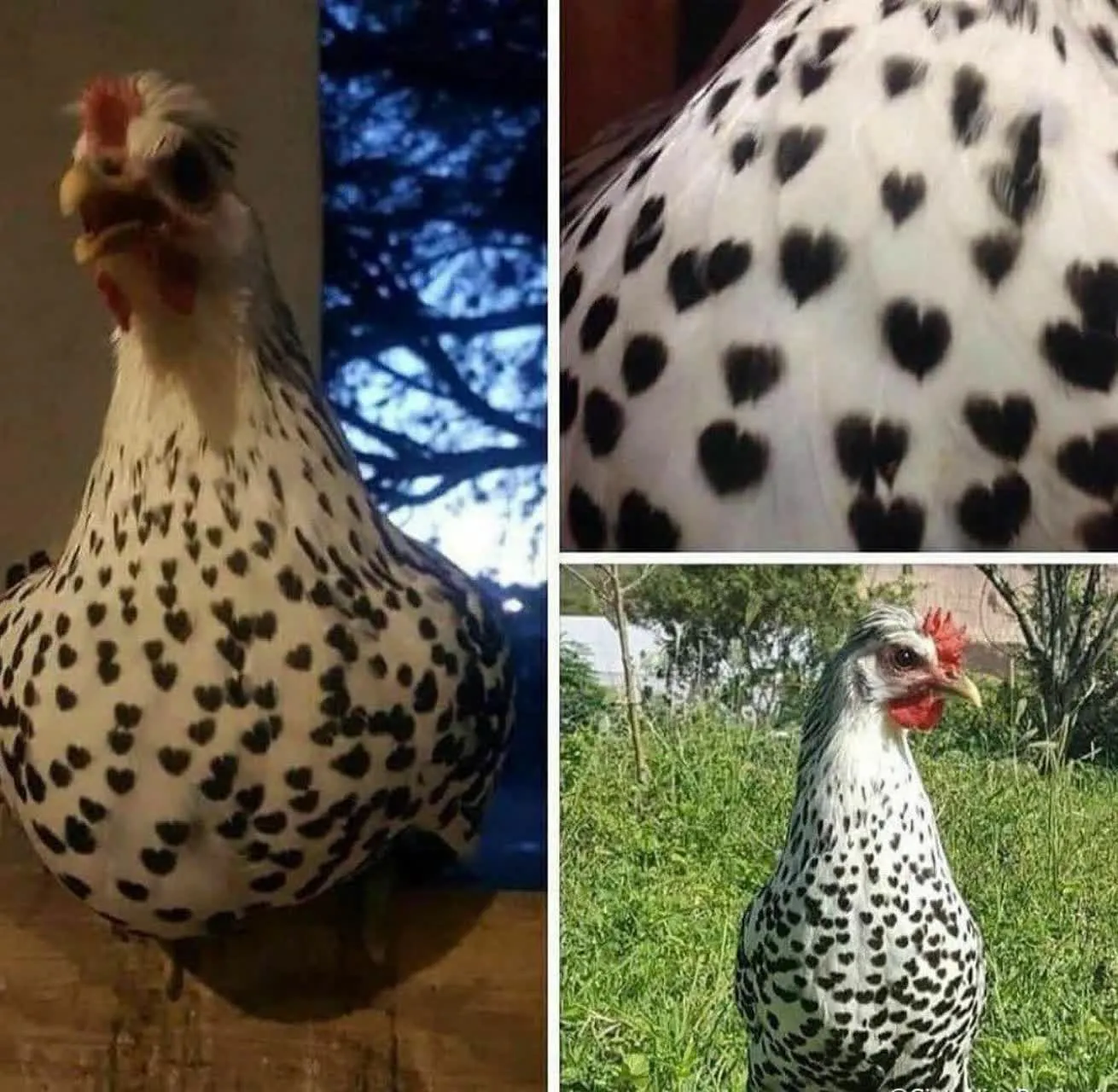 4. Ничего такого. Просто курица, в которой перья имеют естественные пятна в виде сердец