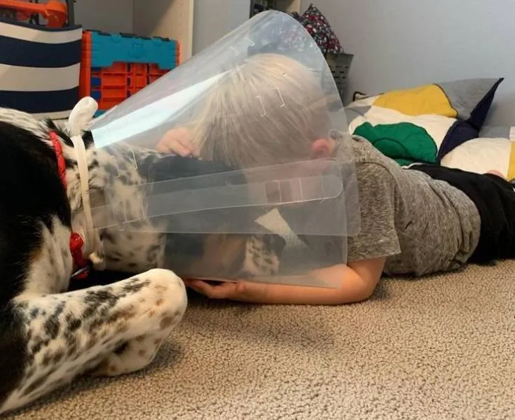 9. Собака решила стать мамой для котенка, которого мы забрали на улице