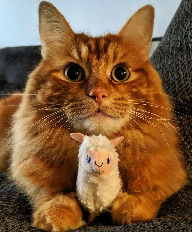 1. Игрушка почти такого же размера, как котенок