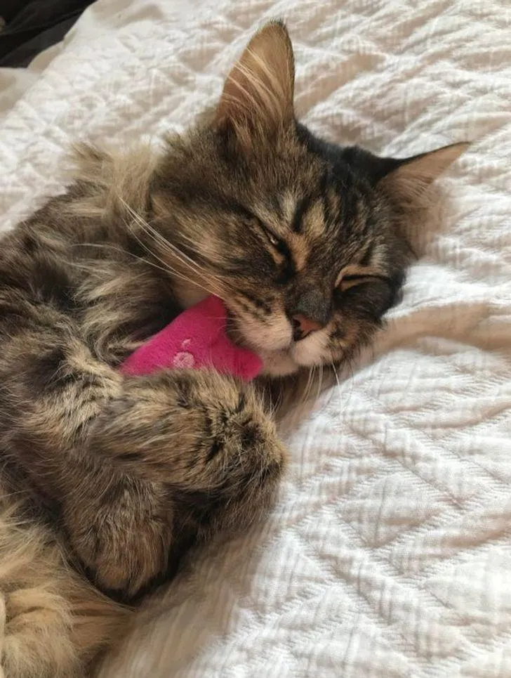 5. Даже котики спят с мягкими игрушками
