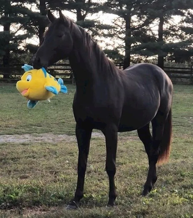 13. Даже лошади любят играть мягкими игрушками