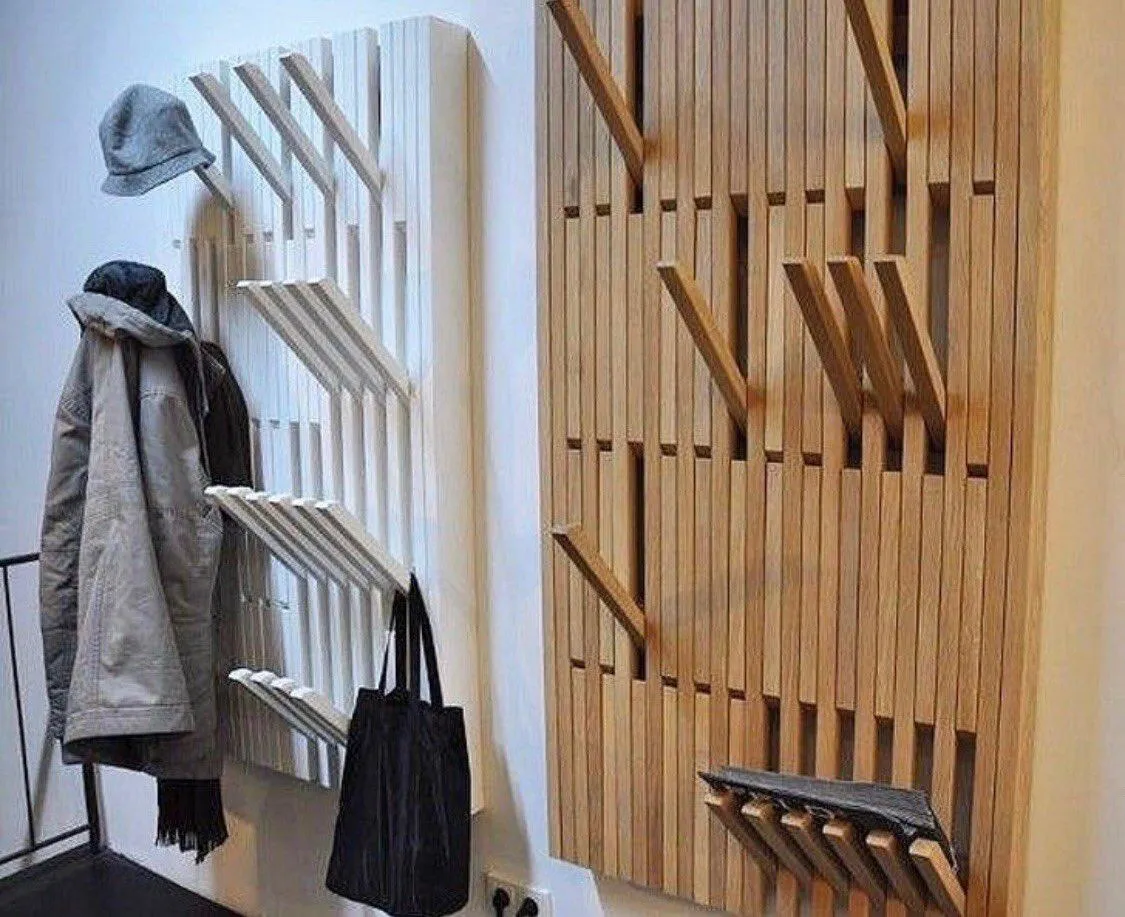 15. Настенная полка для верхней одежды с вешалками, которые вы самостоятельно сможете отодвигать