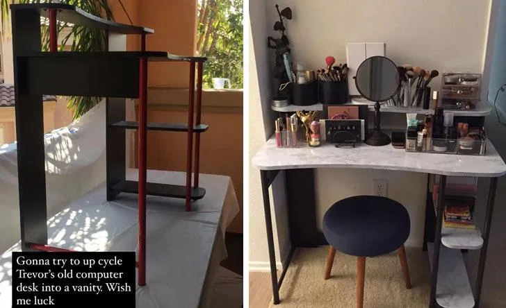 2. "Ненужный компьютерный столик своего парня я превратила в аккуратный туалетный столик"