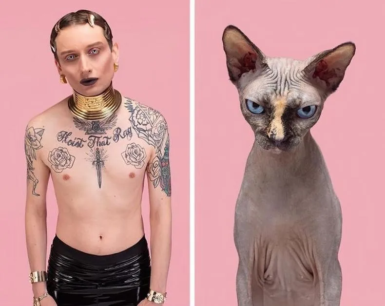 На всех фото кошки и собаки так или иначе похожи на своих хозяев. Такое сходство удивительно.