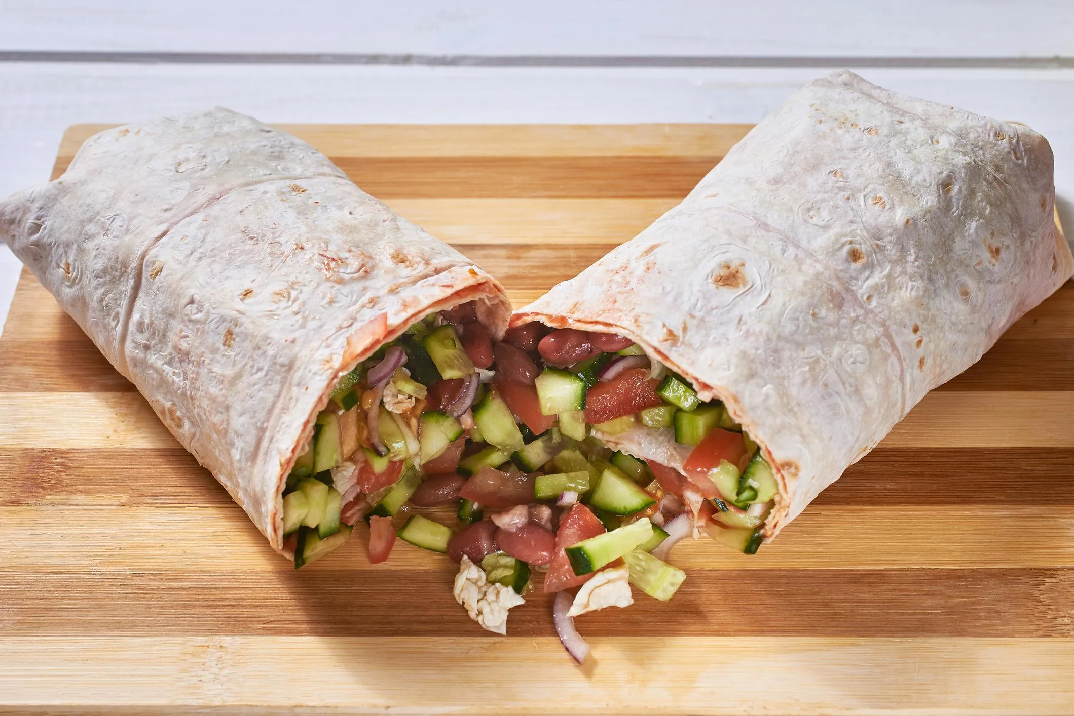 - Чтобы завернуть лаваш, намажьте его сначала йогуртовым соусом. Сверху немного салата и помидоров и куриной шаурмы. Заверните и наслаждайтесь!