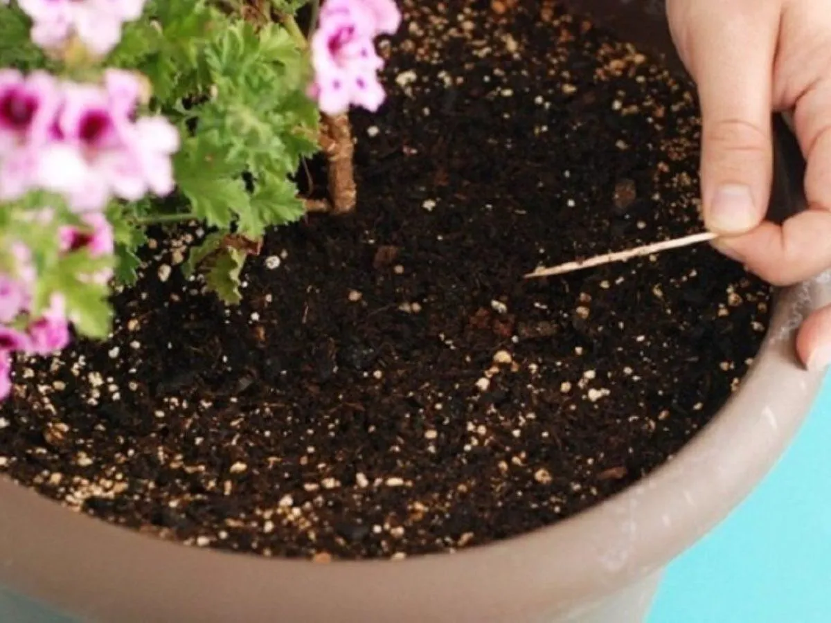 Использование зубочистки для определения влажности почвы в горшках с вазонами