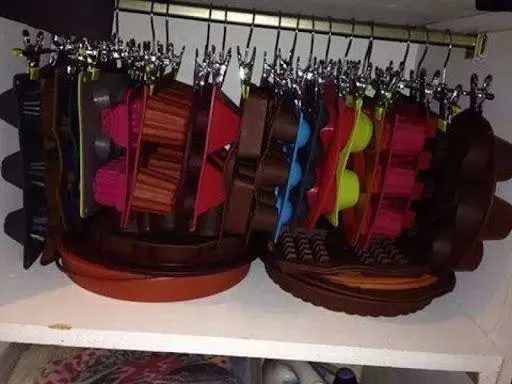 Если вы хотите упорядочить все силиконовые формочки для выпечки, но у вас маленькая кухня, используйте небольшие вешалки для одежды с прищепками.