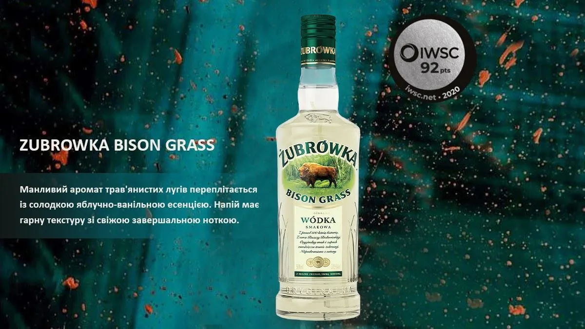 Вот как эксперты описали Zubrowka Bison Grass: "манящий аромат травянистых лугов переплетается со сладкой яблочно-ванильной эссенцией. Напиток имеет красивую текстуру со свежей завершающей ноткой".