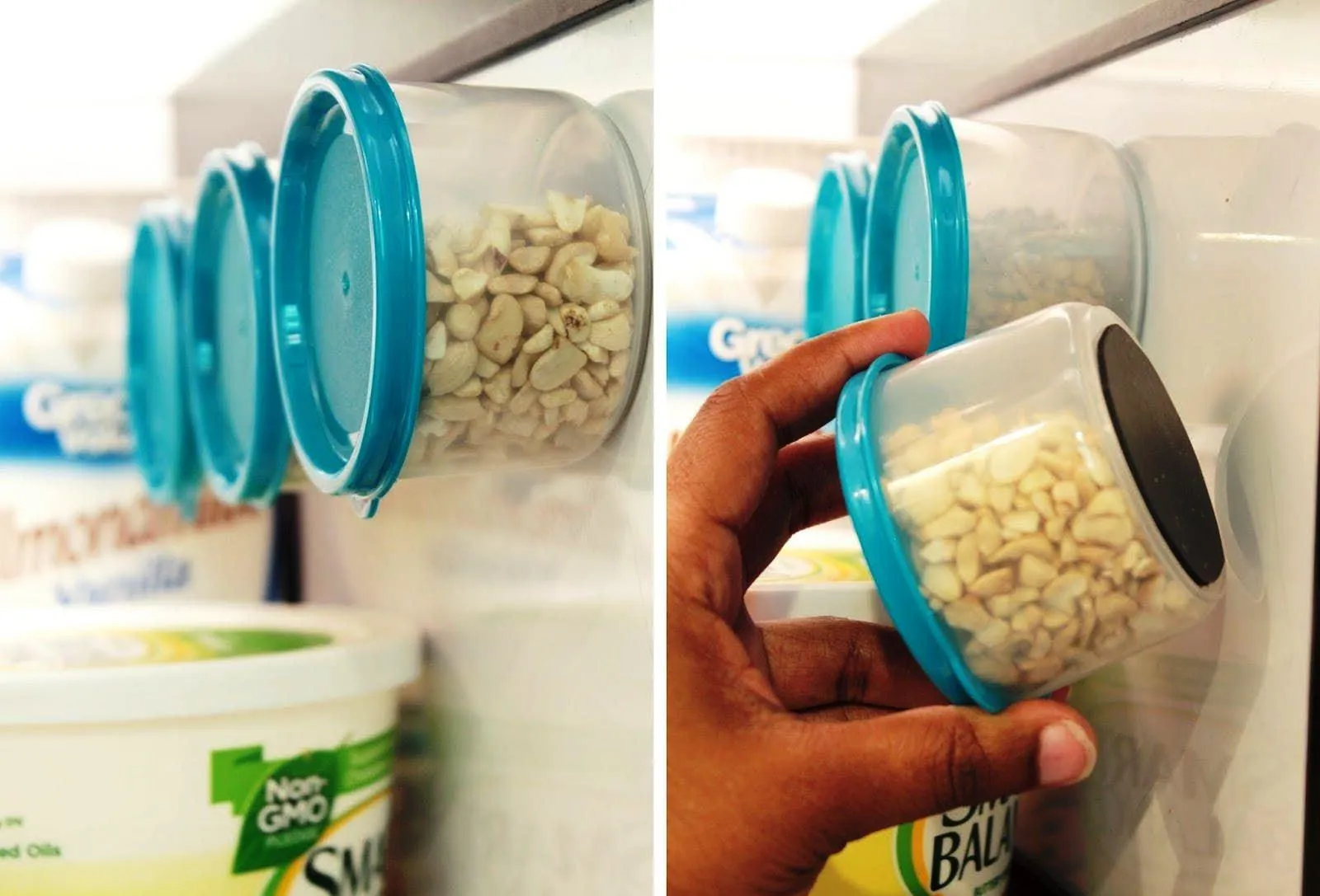 Хотите, чтобы в холодильнике поместилось как можно больше банок, – купите магнитные полоски. Приклейте их к стенкам холодильника и к донышкам банок.