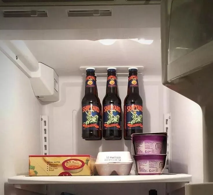 Чтобы бутылки с прохладительными напитками не занимали все пространство, купите специальную магнитную ленту. Благодаря ей в холодильнике все будет упорядочено и под рукой.