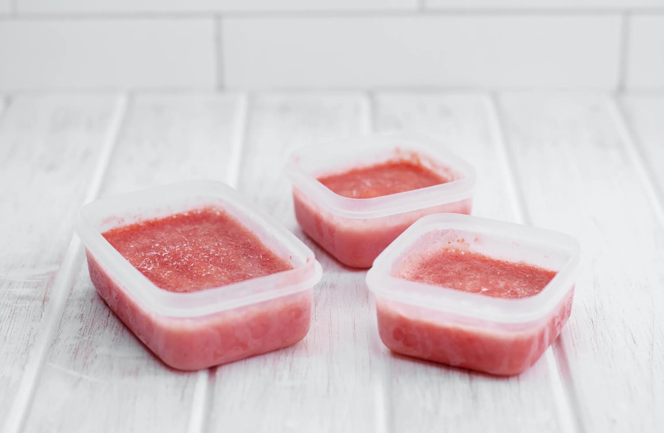 Сначала клубнику нужно подготовить к замораживанию. То есть помыть, оторвать кончики, обсушить и измельчить блендером или другим удобным способом до состояния пюре.