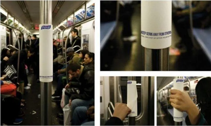 2. Компания позаботилась о чистоте рук пассажиров общественного транспорта, поэтому на поручнях были закреплены рулоны с отрывными полосками
