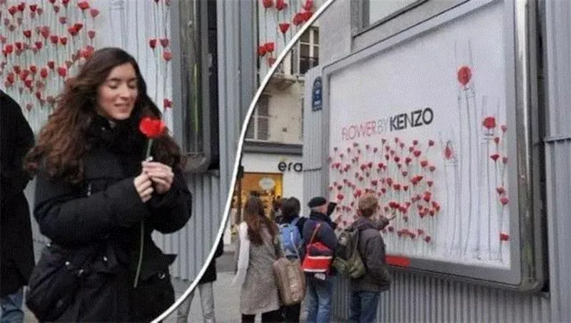 4. Представители компании Kenzo на своем билборде устроили "раздачу" цветов