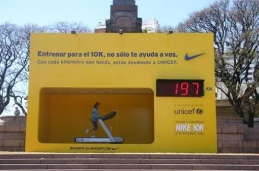 6. Компания Nike установила интерактивный билборд с беговой дорожкой и сообщением о том, что за каждый километр бега человек сделает пожертвования в Unicef