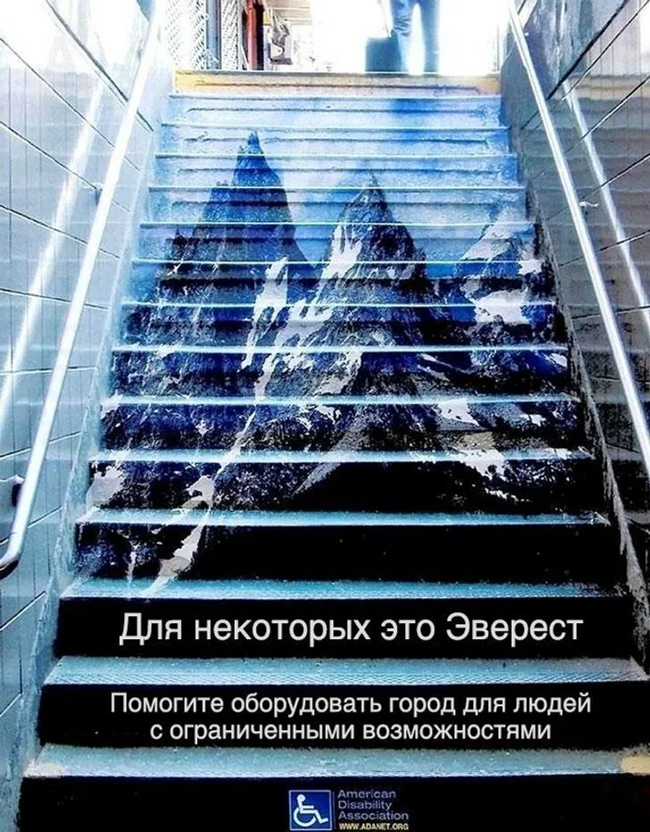 7. Американская ассоциация инвалидов напоминает о том, какую сложность могут представлять лестницы, и призывает участвовать в оборудовании города