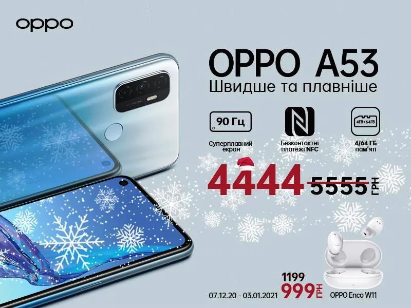 Например, смартфон ОPPO А53 может похвастаться не только IPS-дисплеем, который поддерживает частоту обновления изображения 90 Гц и частоту дискретизации сенсорного экрана до 120 Гц, а также мощным аккумулятором – емкостью 5000 мАч. Дополнительная функция, а именно режим Super Power Saving Mode Mode ( "Суперенергозбережний режим"), продолжает режим питания смартфона, даже если осталось лишь 5%, а быстрая зарядка на 18 Вт помогает оперативно добавить гаджету процентов, если он разрядился. Сейчас ОPPO А53 можно приобрести по праздничной цене 4444 грн. В будущем количество миллиампер в аккумуляторе обязательно увеличится.