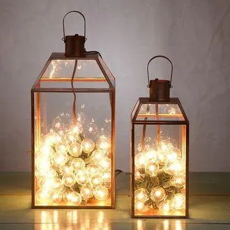 Фонарики в прозрачном подсвечнике / Фото Pinterest